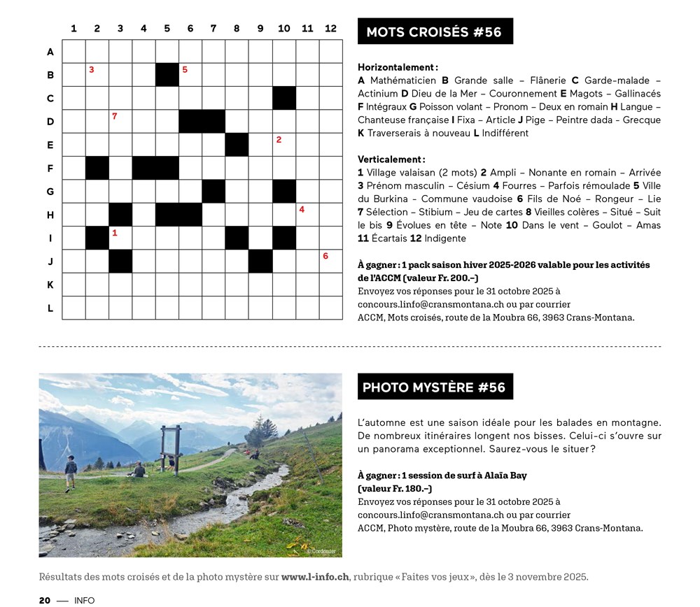 Amusez-vous avec "Le parler à nous", décodez les mots croisés préparés par Jacques Berlie et parcourez notre territoire à la recherche de notre photo mystère. Bref, faites vos jeux! Réponses au concours du numéro 56 de l'INFO, ici, dès le 3 novembre 2025.